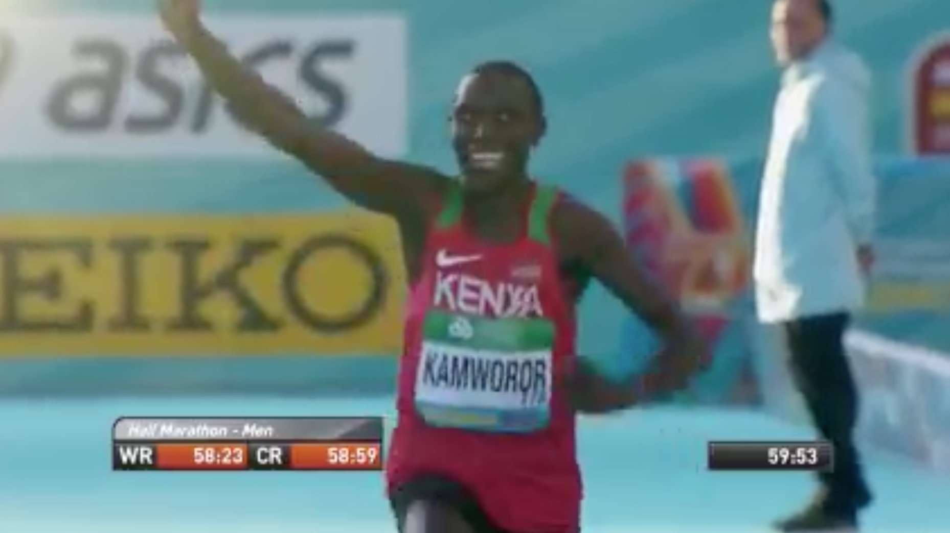 1. Geoffrey Kamworor, KEN - 1:00:02