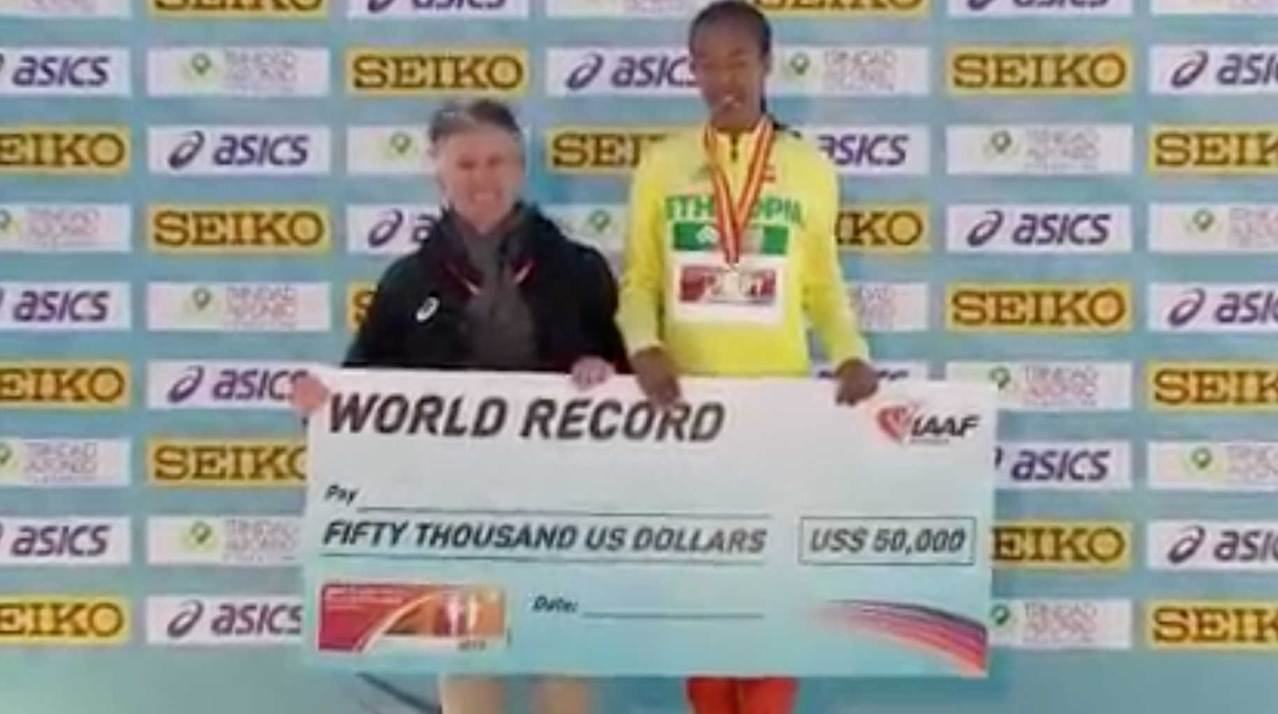 Na mecie zawodniczka z Wyżyny Abisyńskiej uzyskała czas 1:06:11, co jest rekordem świata w półmaratonie bez udziału mężczyzn! Etiopka poprawiła wynik Lornah Kiplagat - 1:06:25.