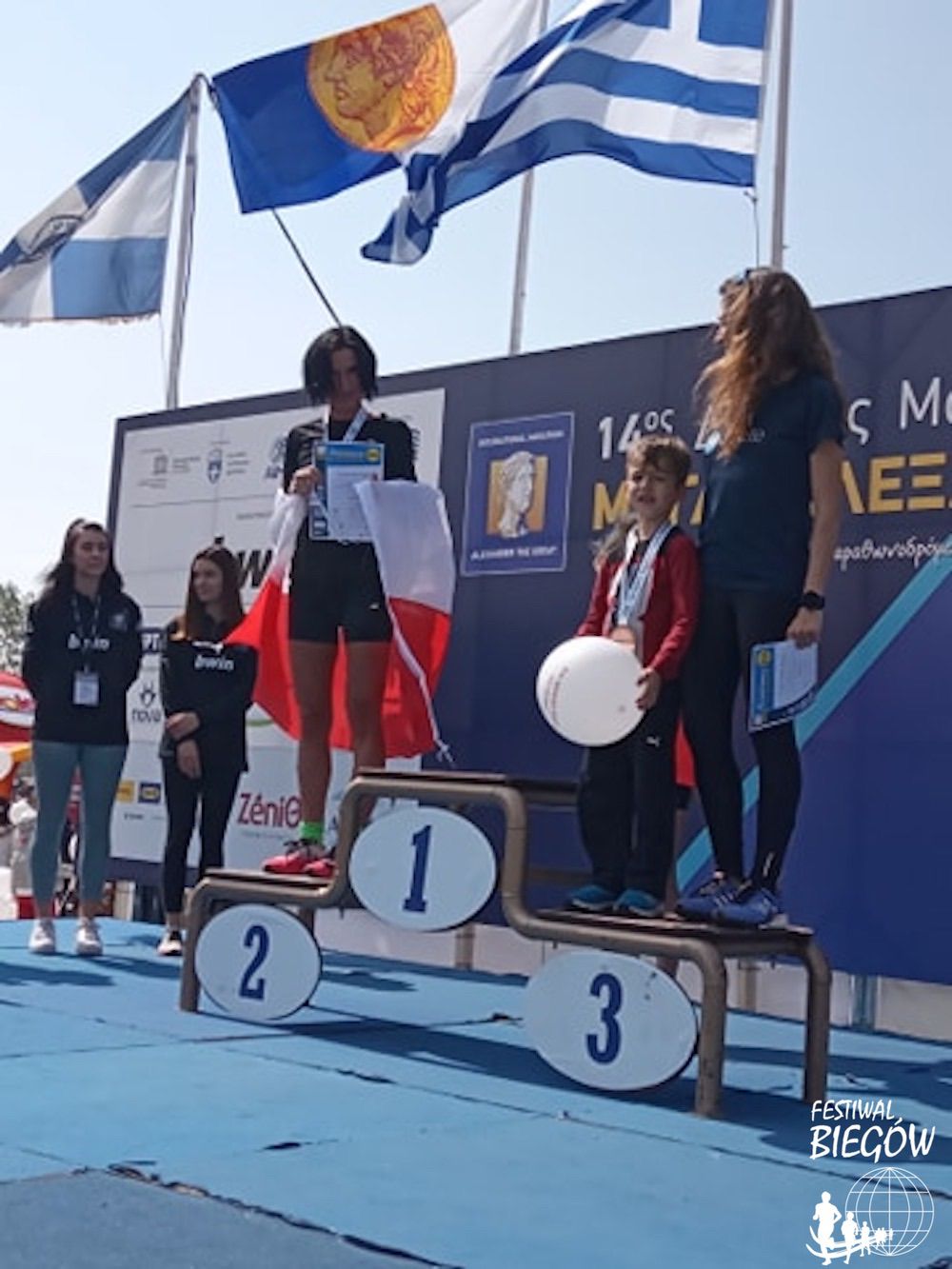 – Miałam nadzieję, że uda się połamać trzy godziny, ale problemy zdrowotne, które miałam wcześniej na to nie pozwoliły. Było jednak dobrze, nie miałam typowej ściany – mówiła Pani Agnieszka po biegu. – Trasa miała być łatwa a okazało się, że wcale taka nie była. Liczyłam na krótkie podbiegi, ale one się mocno ciągnęły. Po 25 kilometrze wiedziałam już, że trójkę muszę odpuścić. Nie wiedziałam wtedy, ile kobiet jest przede mną. Kilka wyprzedziłam po drodze. Dopiero kibice przed samymi Salonikami powiedzieli mi, że jestem druga. Bardzo się cieszę, że mogłam stanąć na podium z polską flagą.