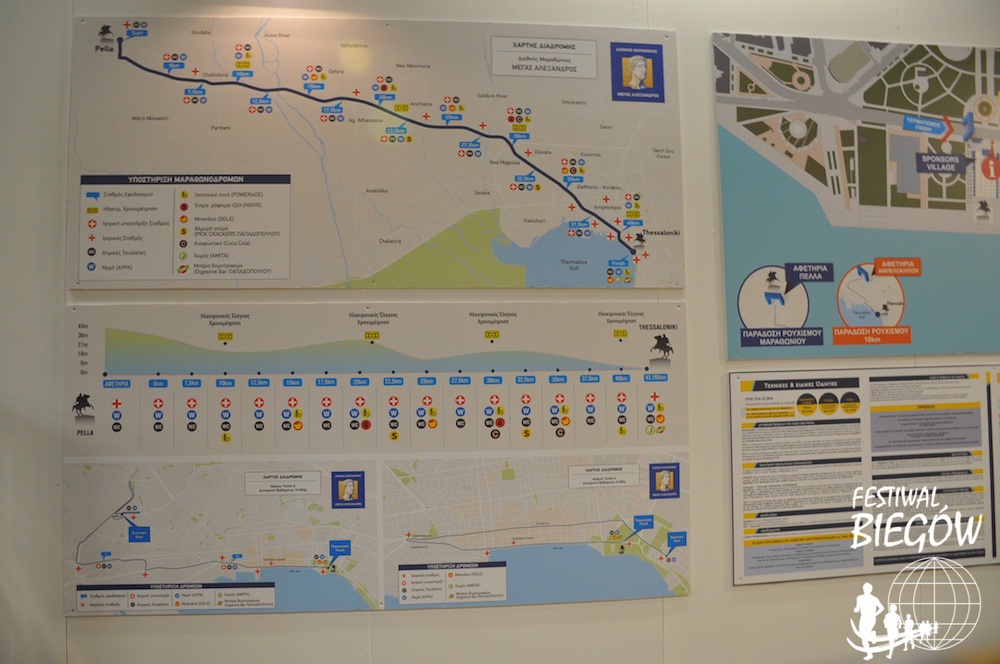 Wiejski krajobraz przechodzi w miejski dopiero kilka kilometrów przed Salonikami, gdzie biegacze mają do pokonania rozległe (i niezbyt atrakcyjne) przedmieścia. Dopiero Finisz prowadzi urokliwą nadmorską promenadą, gdzie emocje podgrzewają setki kibiców. Ci dopingują zwłaszcza maratończyków, niemal ignorując uczestników biegu i marszu na krótszych dystansach. Ci, którzy ukończą królewski dystans, zasługują na szacunek a przejście przez miasto z medalem na szyi wzbudza podziw i uznanie.