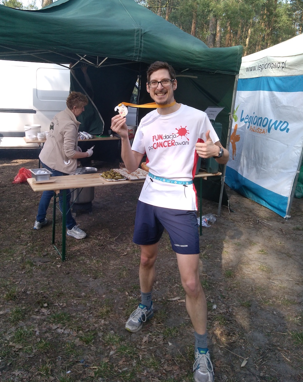 Skąd nazwa? Stąd, że pierwsza edycja odbyła się w Prima Aprilis 1 kwietnia w sobotę. Niska opłata startowa (30zł) zachęca do zapisów. Do tego koszulka bawełniana, po biegu zupa, kiełbasa, chleb ze smalcem, ogórki, herbata, banany, woda. Istny raj. Medal też oczywiście. Wystarczy przebiec po lesie dwie pętle.
