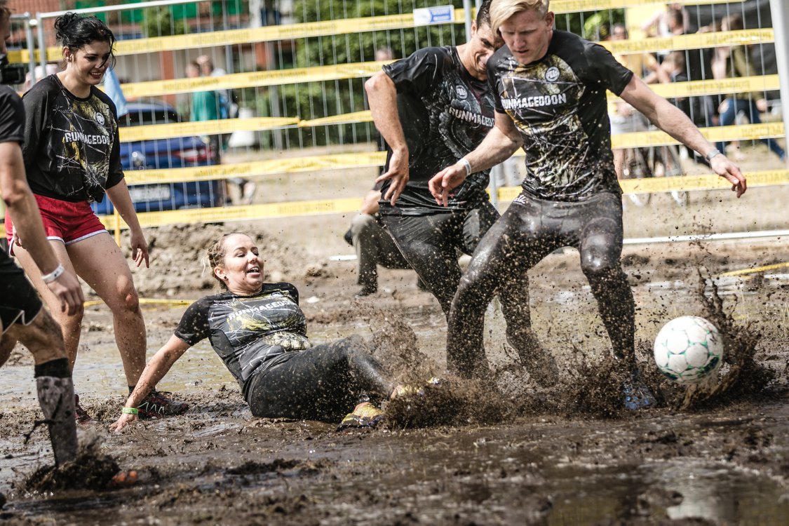 – Około południa na jednokilometrową trasę ruszyły ochoczo dzieci, które z niezwykłą zaciętością pokonywały zasieki, ścianki i czołgały się przez „jelita” w specjalnej formule KIDS, dla dzieci w wieku 4-11 lat. O godzinie 11:15 naprzeciwko siebie stanęły dwie drużyny: ekipa Runmageddonu i Runmageddończyków, mierząc się w pierwszym w historii Wielkim Meczu Piłki Błotnej Runmageddonu. Murawa była iście ekstremalna, pokrywały ją tony błota i hektolitry wody. Błotne rozgrywki zakończyły się zwycięstwem Runmageddończyków 7-3.
