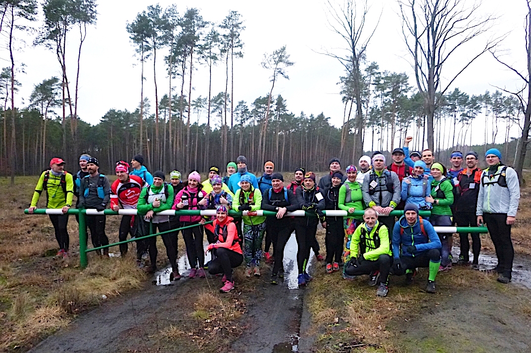 Po wybiegnięciu z Aleksandrowa na bocznych drogach napotkaliśmy coraz większą ilość błota, a na niektórych leśnych i wiejskich odcinkach także gołego lodu. Czasem bieganie graniczyło z niemożliwością i trzeba było przejść do marszu. Przynajmniej słońce wyszło zza chmur i pogoda zrobiła się prawie wiosenna. Atmosfera była piknikowa, z pogaduszkami i postojami na wspólne zdjęcia.