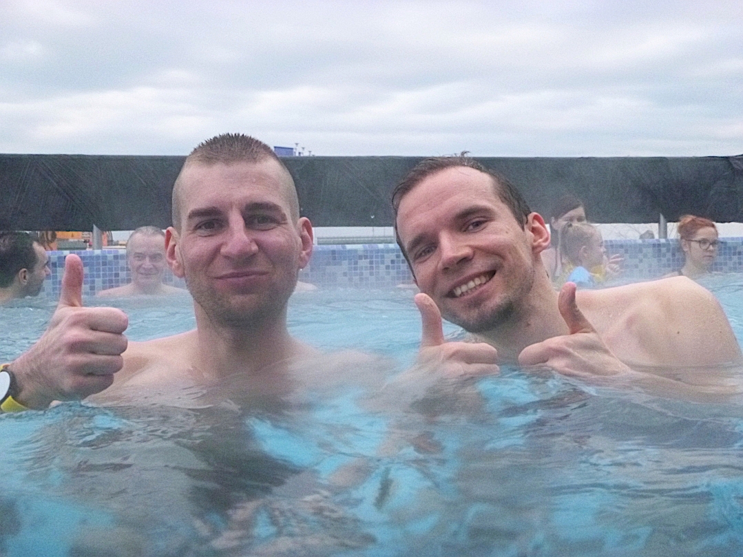 Wysiłek został wynagrodzony pływaniem w ciepłym basenie i gorącą kąpielą solankową, na które zaprosili nas gospodarze term w Uniejowie. Dalszej integracji nie było końca, a niektórzy załapali się nawet na zdjęcia podwodne.