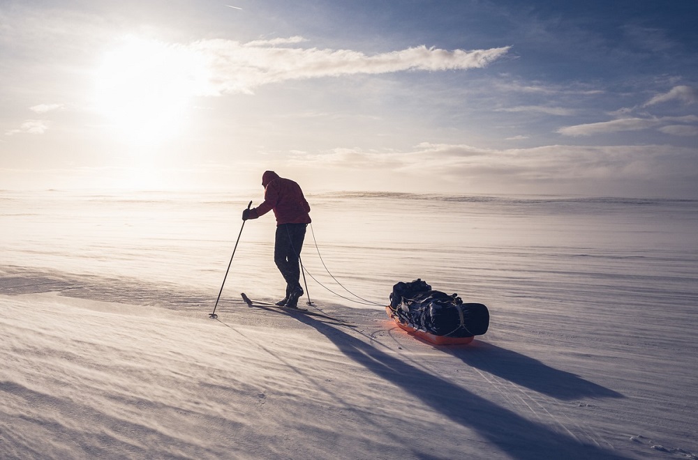 Pewnie tak... ale wymagałby to gigantycznego wysiłku. Natomiast gdybyś zapytał, czy da się ją pokonać bez sań – odpowiem, że prawdopodobnie nie. Ciężar plecaka, który musiałbyś dźwigać, byłby ogromny. Na starcie miałem na saniach jedzenie i paliwo na 3 tygodnie. To ważyło około 25 kg. Do tego dolicz sprzęt i okaże się, że na saniach masz 50 kg towaru. Gdybyś musiał wziąć to na plecy, raczej nie mógłbyś się przemieszczać. A teraz wracając do pytania: czy można by iść ciągnąc sanie bez nart? Hmmm... na mojej trasie było momentami tyle śniegu, że szalenie trudno byłoby przemieszczać się bez nart. Nawet jadąc na nartach zapadałem się po kostki. Bez nart byłoby po kolana. Zrobienie w takich warunkach kilkudziesięciu kilometrów na dobę... wątpię, żeby było to możliwe. Teoretycznie pewnie się da, ale musiałby to być jakiś niesamowity harpagan.