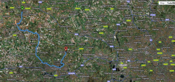 Bieg zaczyna się w Oxfordzie a dokładniej w Iffley, 3 mile na południe od Oxfordu. Prowadzi następnie „Ścieżką Tamizy” wzdłuż brzegów rzeki, nadbrzeżnymi dróżkami spacerowymi i drogami dla bydła. Ścieżka tak jak rzeka biegnie najpierw przez wiejskie tereny na południowy-wschód, do miasta Reading. Potem odbija na północ, do Henley on Thames gdzie znajduje się meta.