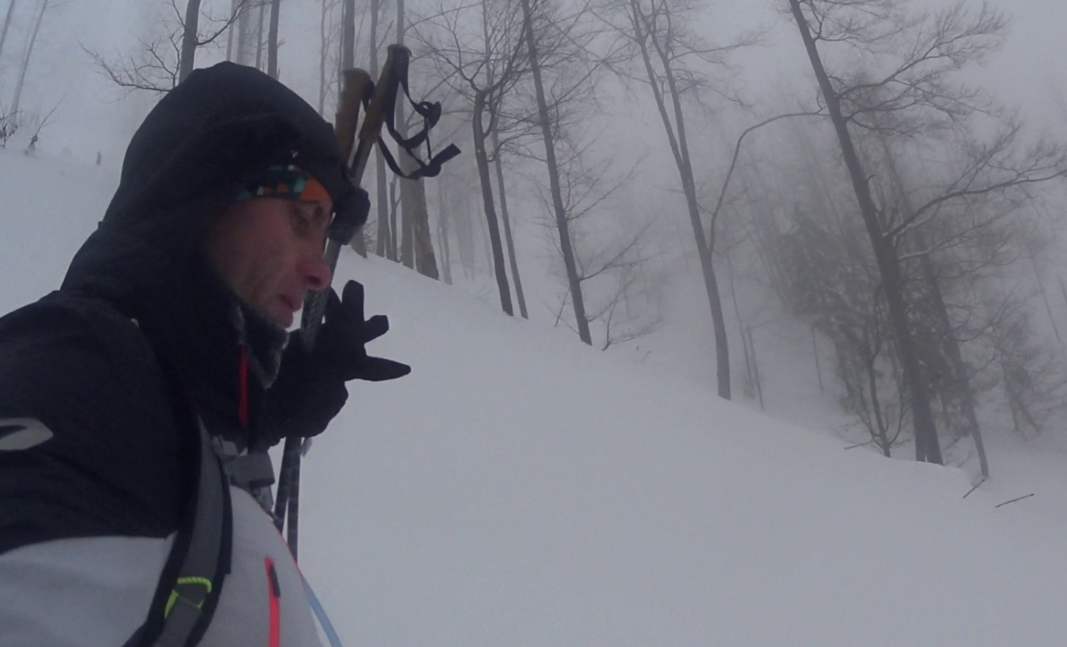 Pierwsze okrążenie, choć może i nie byłem w pierwszej dziesiątce (bo też po co) to jest to po części ciągłe przedzieranie się. Jak tu biec, jak stopę stawiać kiedy z każdym krokiem stopa “zjeżdża” do środka - asekuracja kijami w celu stabilizacji postawy czasem pomaga a czasem zwyczajnie kije topią się w śniegu całkowicie. To jest jak wpadanie w zaspy świadome i wydostawanie się z nich.