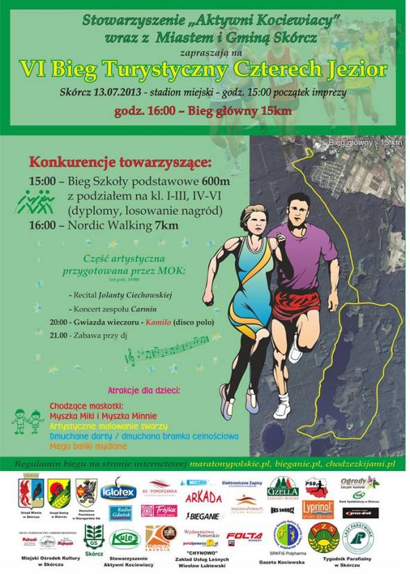 W drodze na wakacyjny wypoczynek np. do Starogardu Gdańskiego możemy trafić na Skórcz, a raczej do Skórcza, czyli ponad 3 tysięcznego miasteczka. To właśnie w tej miejscowości 13 lipca odbędzie się VI Bieg Turystyczny Czterech Jezior. Na biegaczy czeka płaska 15 km trasa, która nie powinna wywołać? skurczy u biegaczy.
