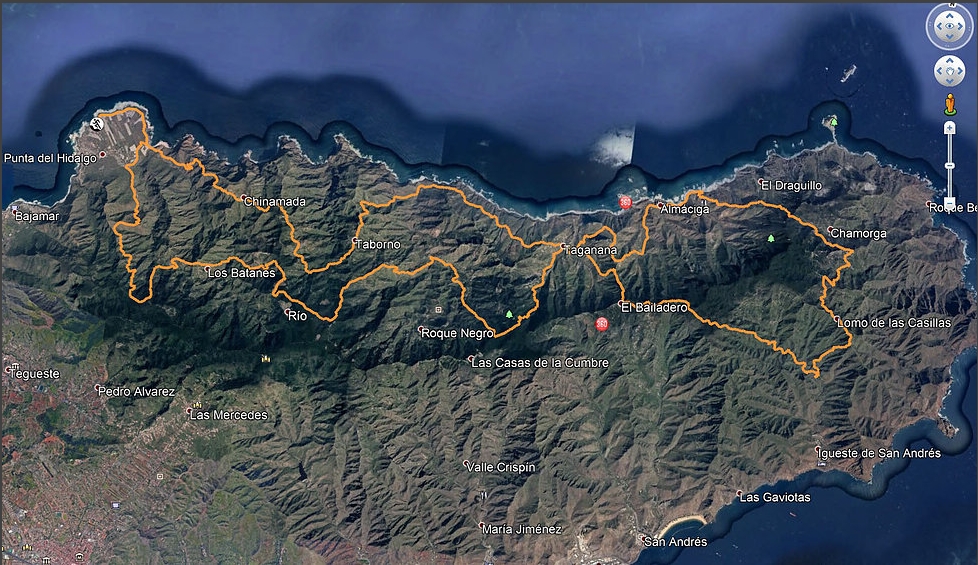 Koronny dystans Ultra Los Caseríos na swoich 73 km zbiera aż 6200 m podejść, odwiedzając wiele tych samych miejsc, co wspomniany październikowy Santa Cruz Extreme. Trasa kręci przez góry wzdłuż oceanu na wschód, raz spadając na wybrzeże w miejscowości Almáciga i na czarnej wulkanicznej plaży Benijo. Zawraca w okolicach wiosek Chamorga i Lomo de las Casillas, by podążać na zachód mniej więcej głównym grzbietem Anagi, przez El Bailadero, Tagananę i Los Batanes z powrotem do Punta del Hidalgo. Po drodze 13 bufetów, z czego 7 tylko z napojami. Limit 18 godzin. 4 punkty ITRA. Mapka, profil i szczegóły: TUTAJ.