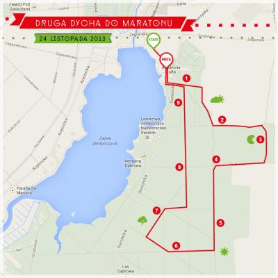 Trasa ma długość 10 km, w większości będzie przebiegała drogami nieutwardzonymi przez las Dąbrowa (trasa nie posiada atestu PZLA). Start i meta znajdują się w pobliżu tamy na Zalewie Zemborzyckim przy al. K. Bryńskiego. Prowadzony będzie elektroniczny pomiar czasu, limit na pokonanie trasy wynosi 80 minut.