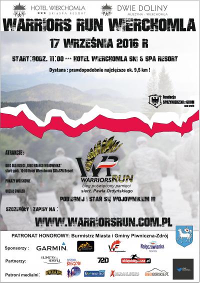 W sobotę 17 września w Wierchomli Małej (Beskid Sądecki) odbędzie się drugi bieg cyklu Warriors Run i będzie to premia górska. Długość trasy ok. 9 km.