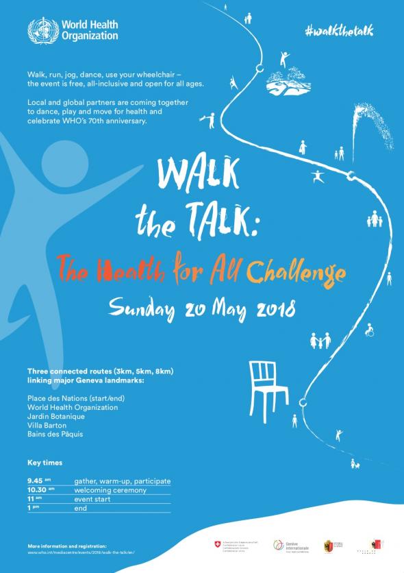 Z tego powodu organizacja zdecydowała się obchodzić swoją 70. rocznicę utworzenia na sportowo. 20 maja w Genewie organizuje darmowy Walk the Talk, w ramach którego odbędą się marsze/biegi na trzech dystansach: 3, 5 i 8 km. Przed uczestnikami nie ma żadnych ograniczeń. Dystans można przebiec, przejść lub przejechać na wózku. Trasa prowadzi przez największe atrakcje w mieście, a po drodze mają czekać na biegaczy dodatkowe atrakcje.