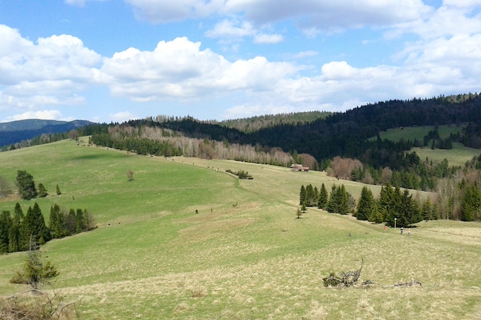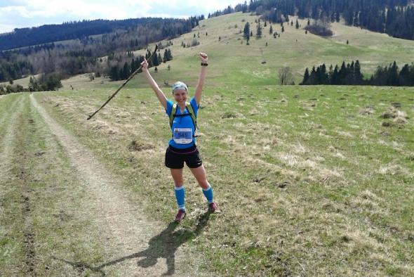 Gdy dobiegłam do 28 km, ukazała przede mną się magiczna przełęcz Rozdziela. Widoki niesamowite. Uważam, ze chociażby dla tego warto pomęczyć się przez te 43 kilometry. Myślałam jednak, że już żadnych dłuższych podbiegów nie będzie. A jednak …