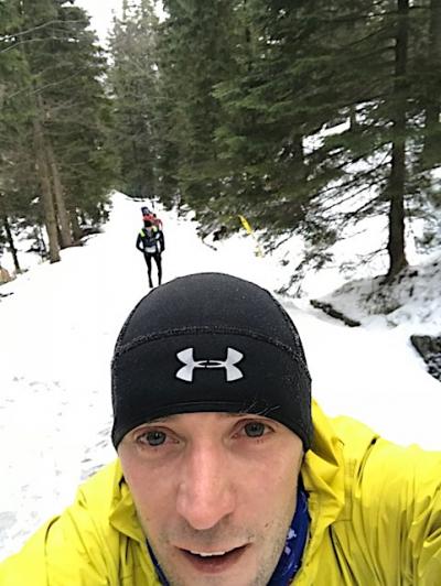 Biegnie się naprawdę dobrze pomimo. że ciągle mozolnie się wspinamy. To już standardowy dystans półmaratonu. Nie byłem świadomy, że prawdziwe zmagania zaczną się na tym odcinku: Odrodzenie - Dom Śląski pod Śnieżką. Silny wiatr spychający z trawersu trasy, zacinający śnieg w oczy i brodzenie po nawianych nasypach. Wiatr przeszywający na wylot nawet kurtki wiatroszczelne… To bez dwóch zdań najcięższy odcinek biegu, 8 km poniewierki w warunkach zawieruchy. Właśnie takie chwilę wspomina się najlepiej!
