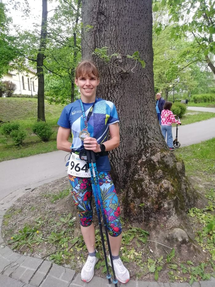 Osobiście uczestniczyłam w marszu nordic walking. Na liście startowej było około 80 osób. Przed startem zostaliśmy ustawieni z podziałem na: kobiety po lewej stronie a panowie po prawej stronie. Na trasie towarzyszyło nam 4 sędziów na rowerach którzy bacznie pilnowali prawidłowej techniki. Za często nie startuje w zawodach nordic walking ale pierwszy raz się spotkałam z tym by sędziowie tak zwracali uwagę na technikę i w trakcie zawodów poprawiali, pokazywali błędy, dawali wskazówki. Było to trochę stresujące a zarazem motywujące do większej świadomości prawidłowego marszu. Początkowo szłam jako pierwsza kobieta. Niestety od startu towarzyszył mi ból w biodrze który z czasem się nasilał i niestety ostatnie 3 km musiałam już zwolnić. Ostatecznie ukończyłam jak 10 osoba open i 3 kobieta open z czasem 1 h 11 min 44 s. Dekoracje wszystkich konkurencji przewidziano na 17:30 łącznie z losowaniem nagród. Wszystko trwało bardzo długo. Całość zakończyła się dopiero po 19 co dla wielu osób było dosyć frustrujące, zwłaszcza jeśli czekała długa podróż do domu. Poza tym to dobrze zorganizowana impreza którą mogę polecić.