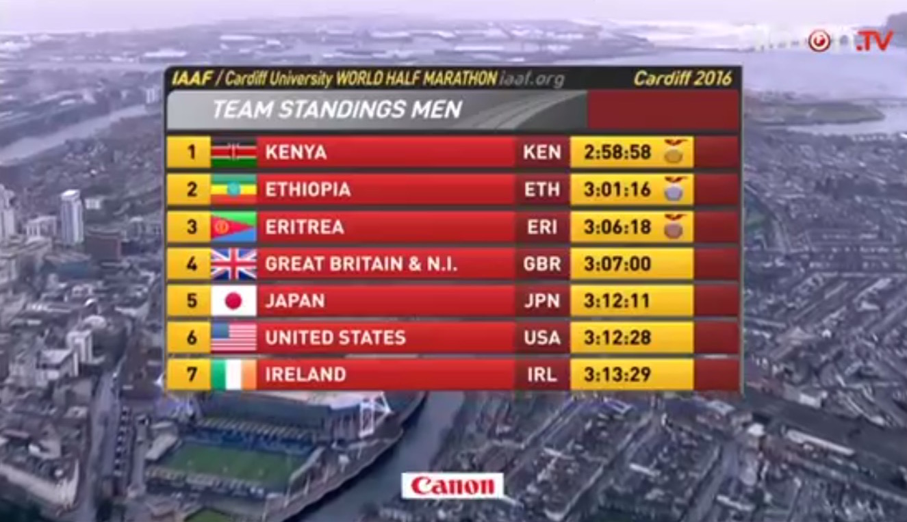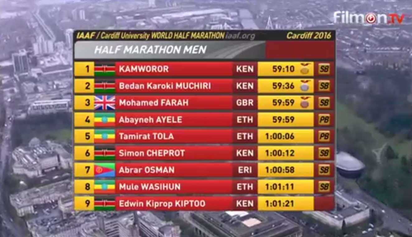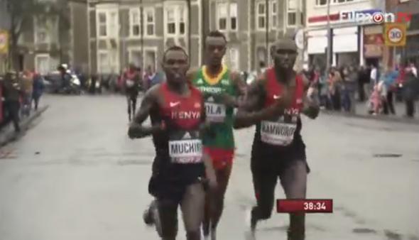 He's leading now though! pic.twitter.com/Od6C1bH3P7— Cardiff World Half (@Cardiff2016) 26 marca 2016