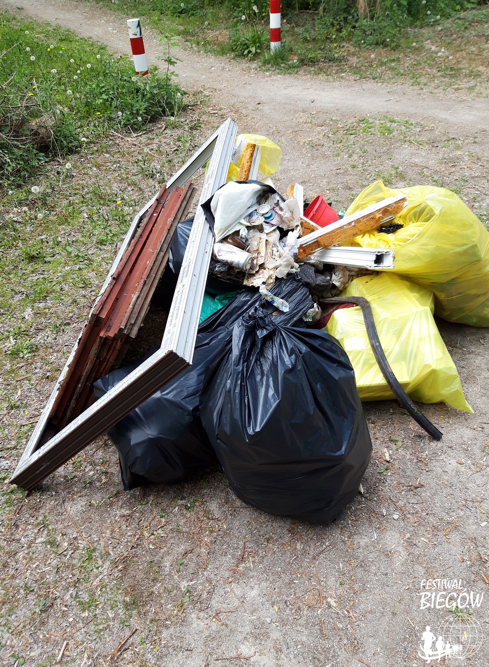 Napełnione torby ustawiano przy głównej alejce. Po czterech godzinach odpady były zebrane. „Desantowa” grupa biegaczy i biegaczek ruszyła za most Grota Roweckiego, bo tam zapowiadało się chyba najwięcej roboty. Reszta zaczynała w okolicach polany przy PKOL.