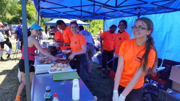 Dobiegamy do Smreka (56km / 590m) już pełni wiary we własne siły. Zostaje ona wzmocniona przez obsługę punktu oferującego szeroki zakres delikatesów dla podniebienia. Kanapki różnego rodzaju, pyszna zupa pomidorowa, żele i wiele jeszcze innych (oprócz oczywiście wody i izotoniku) to zdecydowanie więcej niż to, do czego przywykliśmy na punktach kontrolnych tego rodzaju imprez. No i ta bardzo miła obsługa wolontariuszy. Spędzamy tu 25 minut i wybiegamy tuż przed ukończeniem dziewiatej godziny biegu. Jest dobrze, przynajmniej tak się nam wydaje.