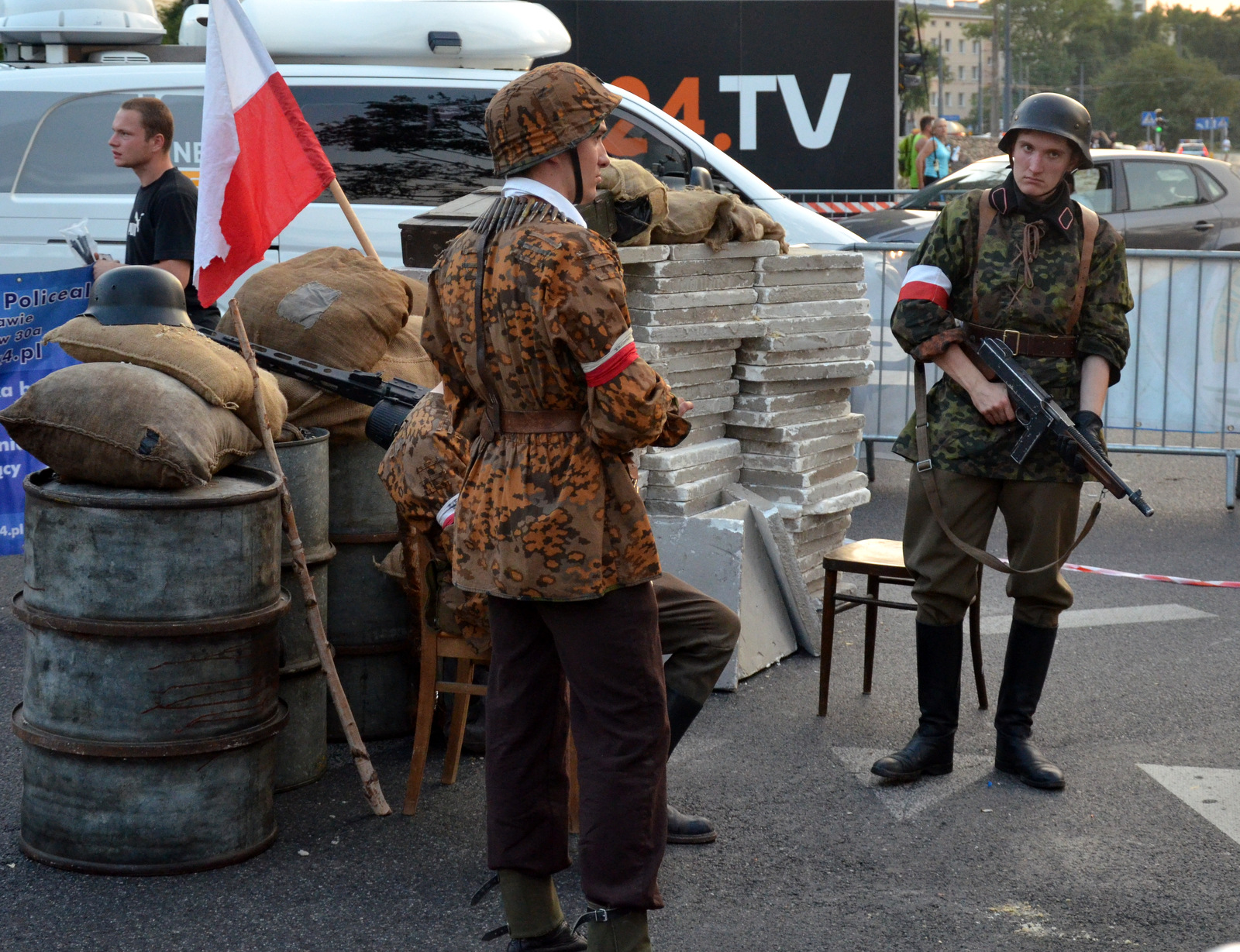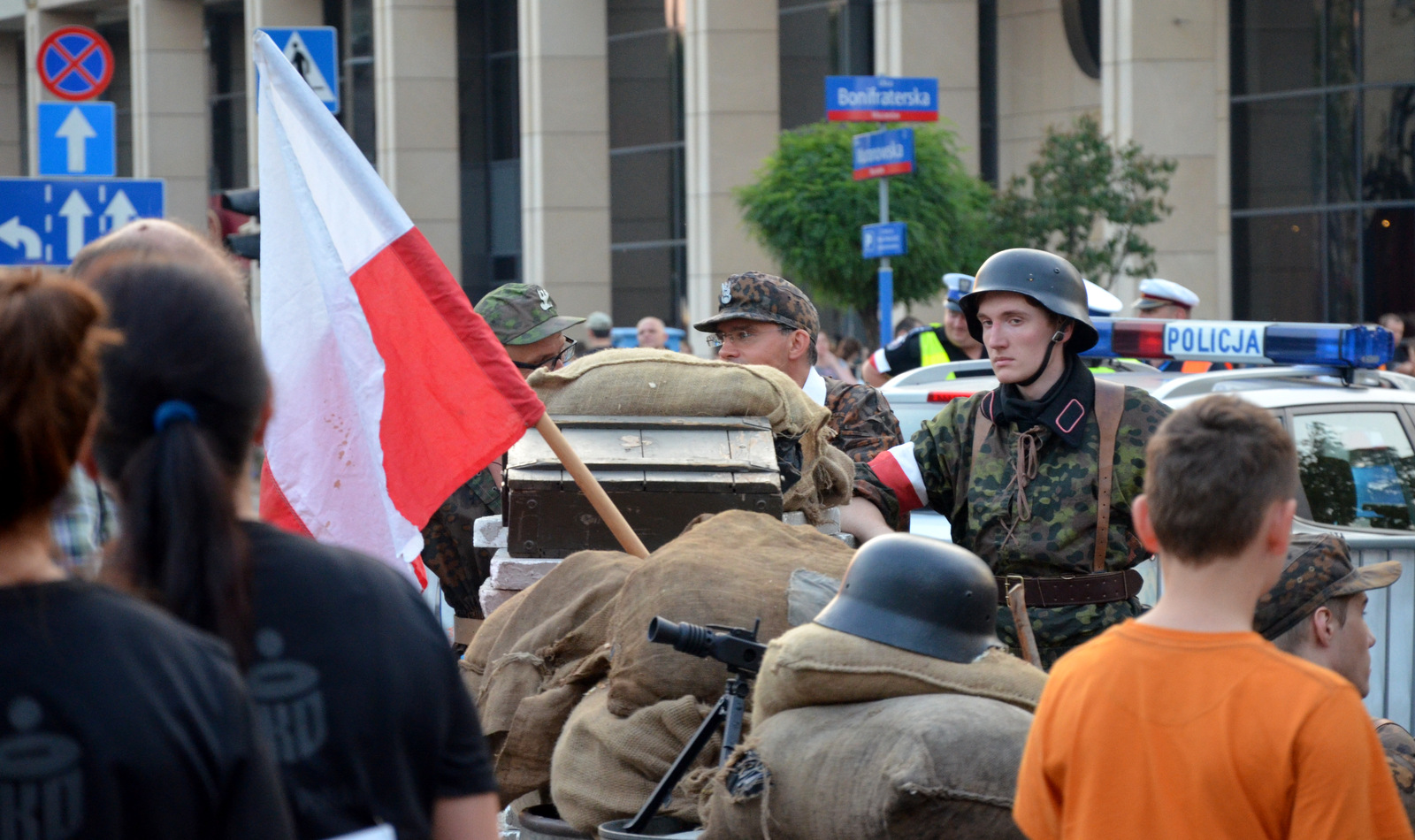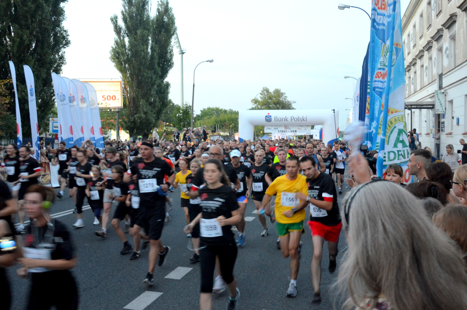 W końcu zbliża się moja ?Godzina W?. Ustawiam się pod koniec grupy biegaczy. Mój zeszłoroczny wynik 35:50 w debiucie nie upoważnia mnie do lepszych miejsc. Rozglądam się wokół, chyba tylko ja mam ponad sto kilo wagi. Chyba trzeba odstawić słodycze myślę, ale przecież jakiś nałóg trzeba mieć. Czuje się dobrze rozgrzany, ale wraz z kolejną piosenką Hemp Gru, krótką przemową i ?Rotą? jakoś ?stygnę?. Dlatego staram się podskakiwać, robić w tłumie małe kroki i małe krążenia ramion. Bijemy brawo co jakiś czas uczestnikom Powstania, którzy ze sceny będą oglądali start. W końcu wspólne odliczanie 10?9?8 (?) 3?2...1? Start!