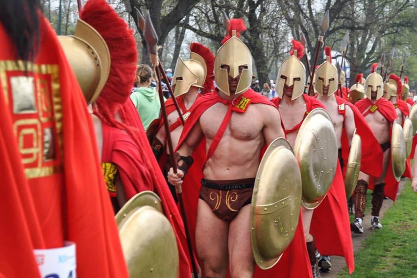 Ruszyliśmy z kilkuminutowym opóźnieniem w słoneczne, choć rześkie przedpołudnie ze środka oddawanego właśnie do użytku mostu drogowego na Wiśle. Nad startującymi krążył mały helikopter, zapewne z kamerą. Z góry musiało to wyglądać niesamowicie, bo biegło prawie cztery tysiące uczestników, prawdziwa masa. Byli wśród nich między innymi starożytnie wyposażeni Spartanie, także na czerwono. Zdarzyło się też kilku biegaczy w innych wystrojach, zauważyłem w biegu np. dwie czy trzy choinki. Początek nie za szybki, bo szosa nie za szeroka a biegaczy mnóstwo, trzeba lawirować wyprzedzając.
