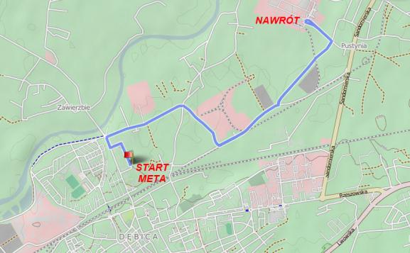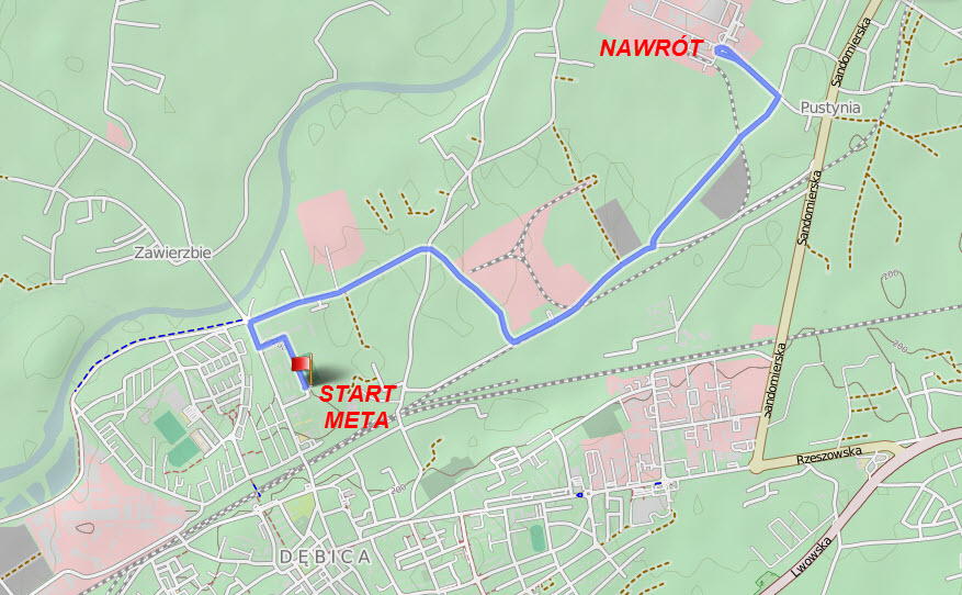 • Przebieg trasy: Start ul. Ratuszowa -> ul. Saperów -> ul. Kościuszki -> ul. Kosynierów Racławickich -> ul. Mościckiego -> ul. Metalowców -> nawrót na rondzie przy firmie Darco -> powrót do mety tą samą trasą.