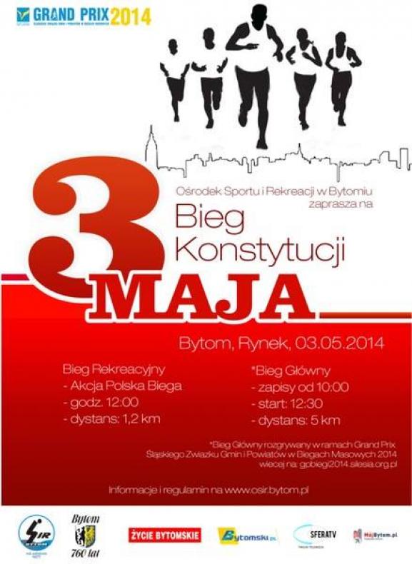 Świętowanie rocznicy uchwalenia Konstytucji 3 Maja przybiera przeróżne formy. W Bytomiu od wielu lat jednym z najpopularniejszych sposobów jest uczestnictwo w dorocznym biegu ulicami wokół Rynku. OSiR Bytom zaprasza na kolejną edycję Biegu Konstytucji 3 Maja.