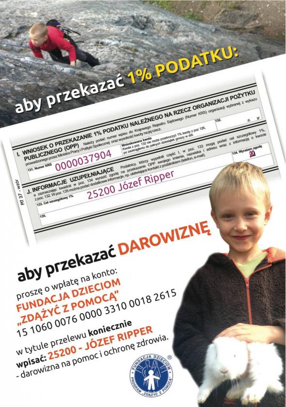 Można także przekazać dla Józia 1% podatku: