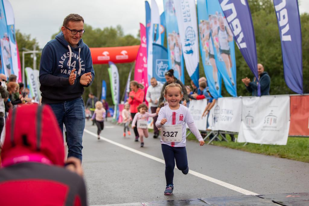 W niedzielę o 13:25 startuje z kolei bieg dzieci do lat 8. Dziewczynki i chłopcy pokonują 300-metrowy odcinek. Niektórzy z pomocą rodziców, inni samodzielnie. Każdy jednak jest pełen młodzieńczego zapału! To bez wątpienia jeden z najradośniejszych biegów na całej imprezie.