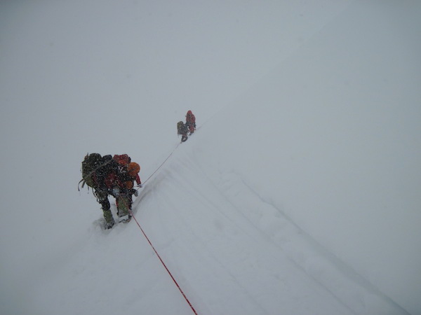 Ostatnia poręczówka przed Przełęczą Północną. Pogoda się tak popsuła, że najwyższy czas na dojście do bazy.