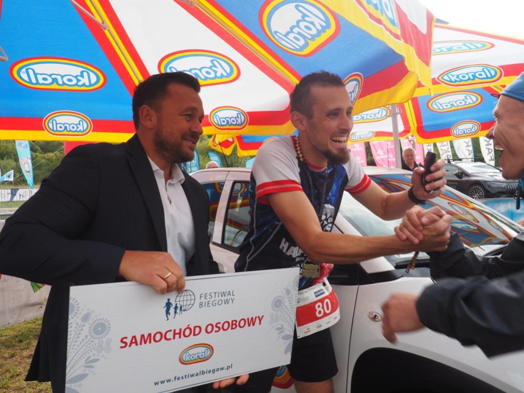 Wygranym okazał się Piotr Szumliński - Jeszcze to do mnie nie dociera! Miałem podwójnego farta. Byłem najlepszy na dystansie 64 kilometrów, a teraz jeszcze to piękne auto. No po prostu nie wierzę! - mówił szczęśliwy Piotr. Festiwal Biegowy to wiele kilometrów do przebiegnięcia pośród malowniczych górskich tras, a po całym wydarzeniu możesz wyjechać nowiutkim samochodem, tego doświadczył Piotr!