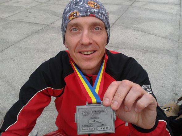 Cieszę się ale wymarzonej euforii nie ma. Jestem zbyt zmęczony. Wypatruję żonę Grażynkę z synem i całą masę znajomych. Odbieram medal, na który przyszło mi czekać 14:36:31... Ale nie - czekałem na tą chwilę od czasu, kiedy zdecydowałem się biec tą setkę. Ponad 11 miesięcy...