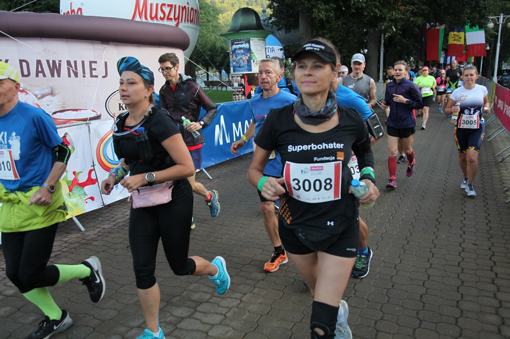 Po przerwie spowodowanej kontuzją pani Aurelii, do Krynicy wrócili w 2017 roku i od tamtej są na Festiwalu Biegowym już co roku. Punktem obowiązkowym pobytu jest, oczywiście, Koral Maraton. Ze względu na kolano małżonki, większą część trasy pokonują razem, dopiero kilka kilometrów przed metą pan Piotr puszcza się nieco szybciej do przodu i kilka minut czeka na żonę na mecie na krynickim deptaku. - Ma satysfakcję, bo w moich najlepszych czasach długo to ja miałam lepszą życiówkę w maratonie - śmieje się Aurelia Stołowska. - Ale taki wspólny bieg to ogromna przyjemność! - dodaje.