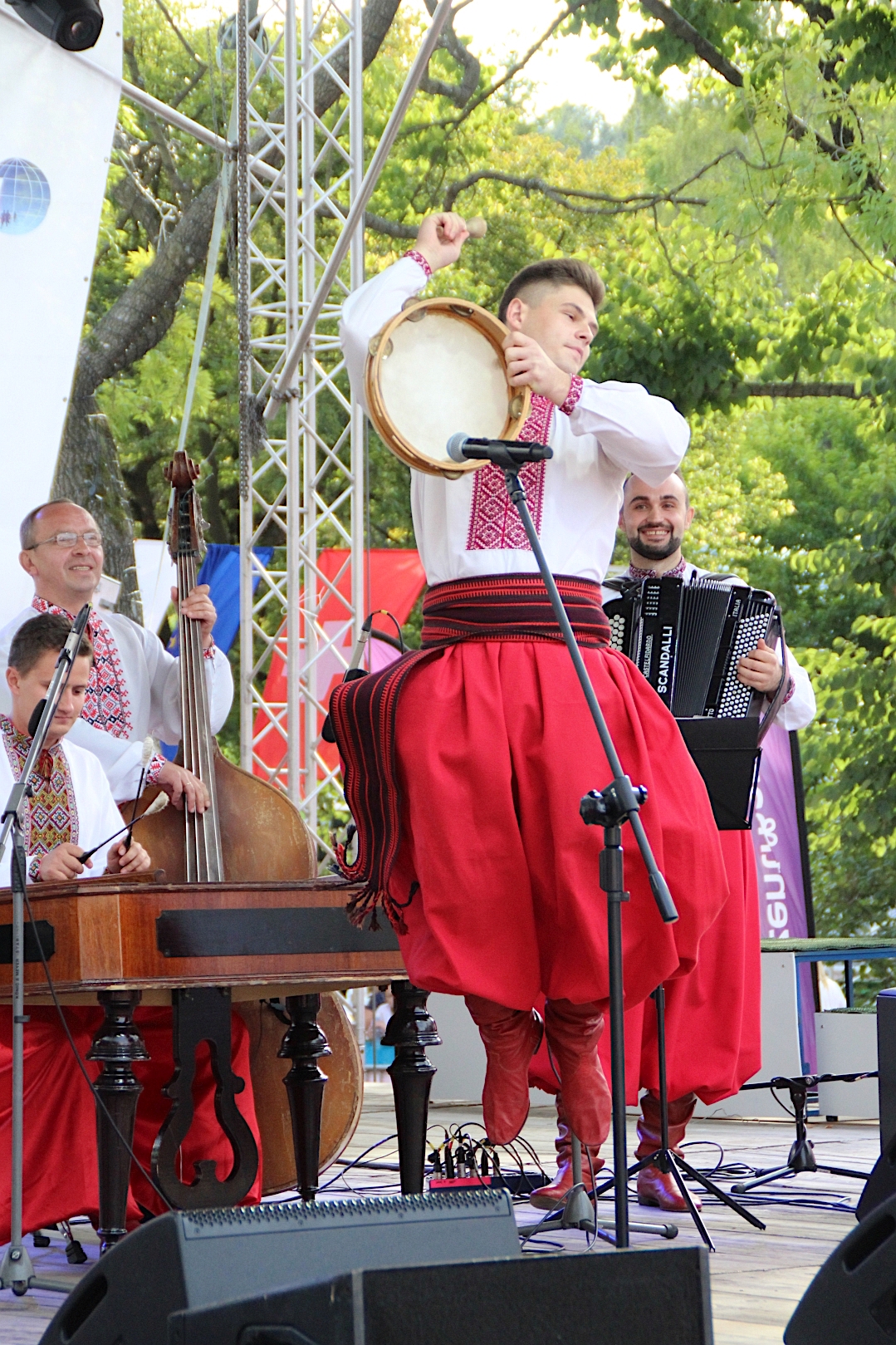 Oprócz czworga wokalistów, w zespole zagrało dwoje skrzypiec (w rękach mężczyzn), kontrabas, akordeon, ksylofon, flet i tamburyn. W ponad godzinnym występie Ukraińcy zaprezentowali wiele utworów wokalnych i instrumentalnych, od spokojnych i rzewnych po bardzo energetyczne.
