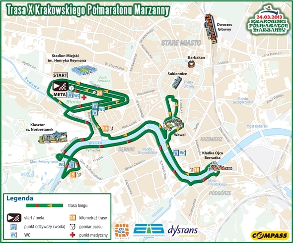 maraznnyNa niecały miesiąc przed X Krakowskim Półmaratonem Marzanny, który odbędzie się 24 marca, na liście startowej widnieje już ponad 1670 zawodników. Półmaraton jest doskonałą okazją do rozpoczęcia sezonu biegowego w Krakowie i wzięcia udziału w sportowej rywalizacji poprzedzonej tradycyjnym topieniem Marzanny. Biegowe pożegnanie zimy i powitanie wiosny stanowi znakomite przygotowanie i sprawdzian formy przed startem w XII Cracovia Maraton, który odbędzie się miesiąc później (27 - 28 kwietnia 2013 roku). Głównym organizatorem biegu jest Krakowski Klub Biegacza Dystans.