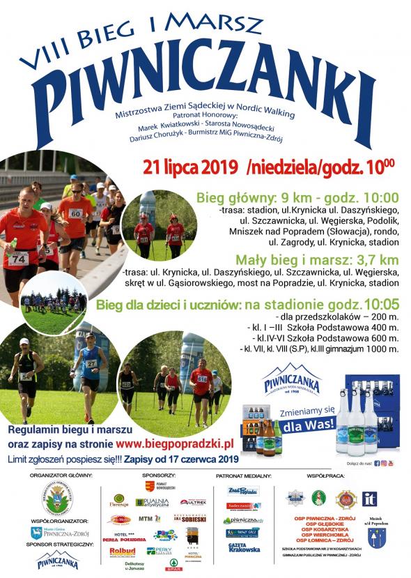8. Bieg Piwniczanki wystartuje w niedzielę 21 lipca o godzinie 10:00. Oprócz biegu głównego w programie znajduje się m.in. też start na 3,7 km oraz marsz nordic walking. Na zwycięzców czekają nagrody i upominki od sponsorów.