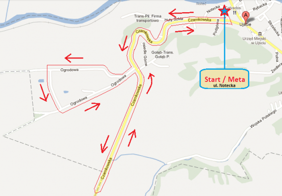 Rywalizacja odbędzie się na dwóch trasach, które w początkowym odcinku pokrywają się za sobą. Trasa krótsza jest wyznaczona dla kategorii dziecko + i ma długość ok. 5 kilometrów, trasa duża ma długość ok. 10 kilometrów.