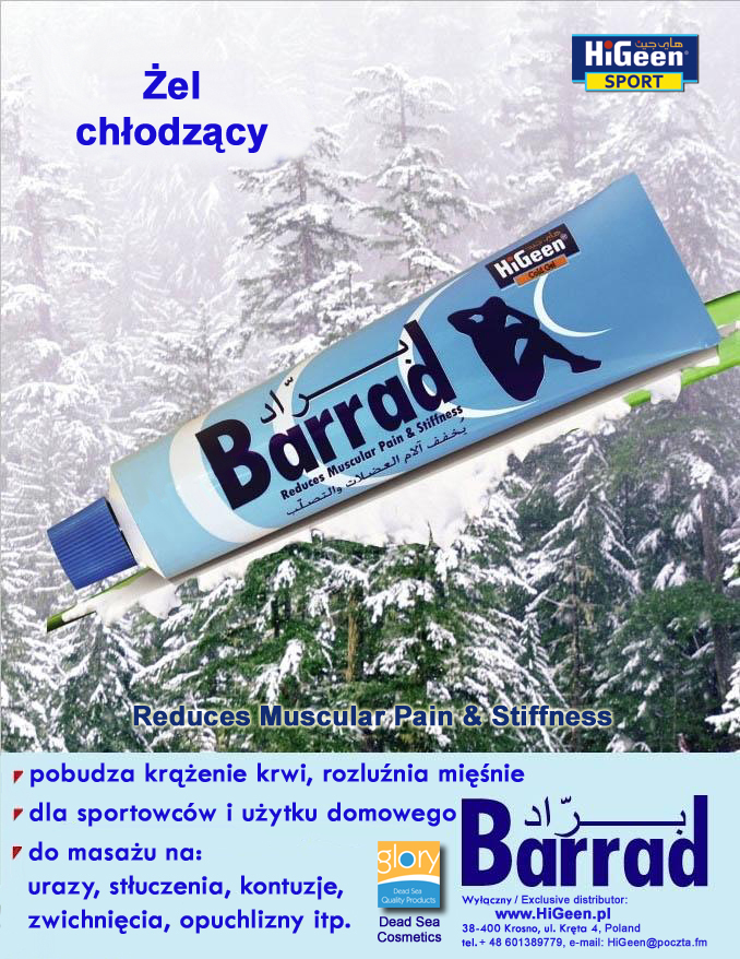 Krem do masażu HARRAR (formuła z naturalnymi ziołami rozgrzewającymi) oraz żel chłodzący BARRAD.