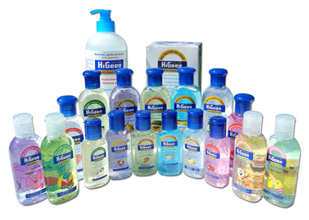 Żele HiGeen do mycia rąk bez wody i mydła,