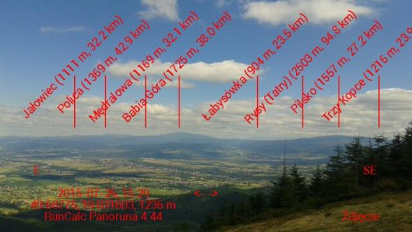 - Wczytanie bazy szczytów górskich, które odzwierciedlone są potem na mapie oraz w opcji Panoruna (automatyczne generowanie opisu górskiej panoramy).