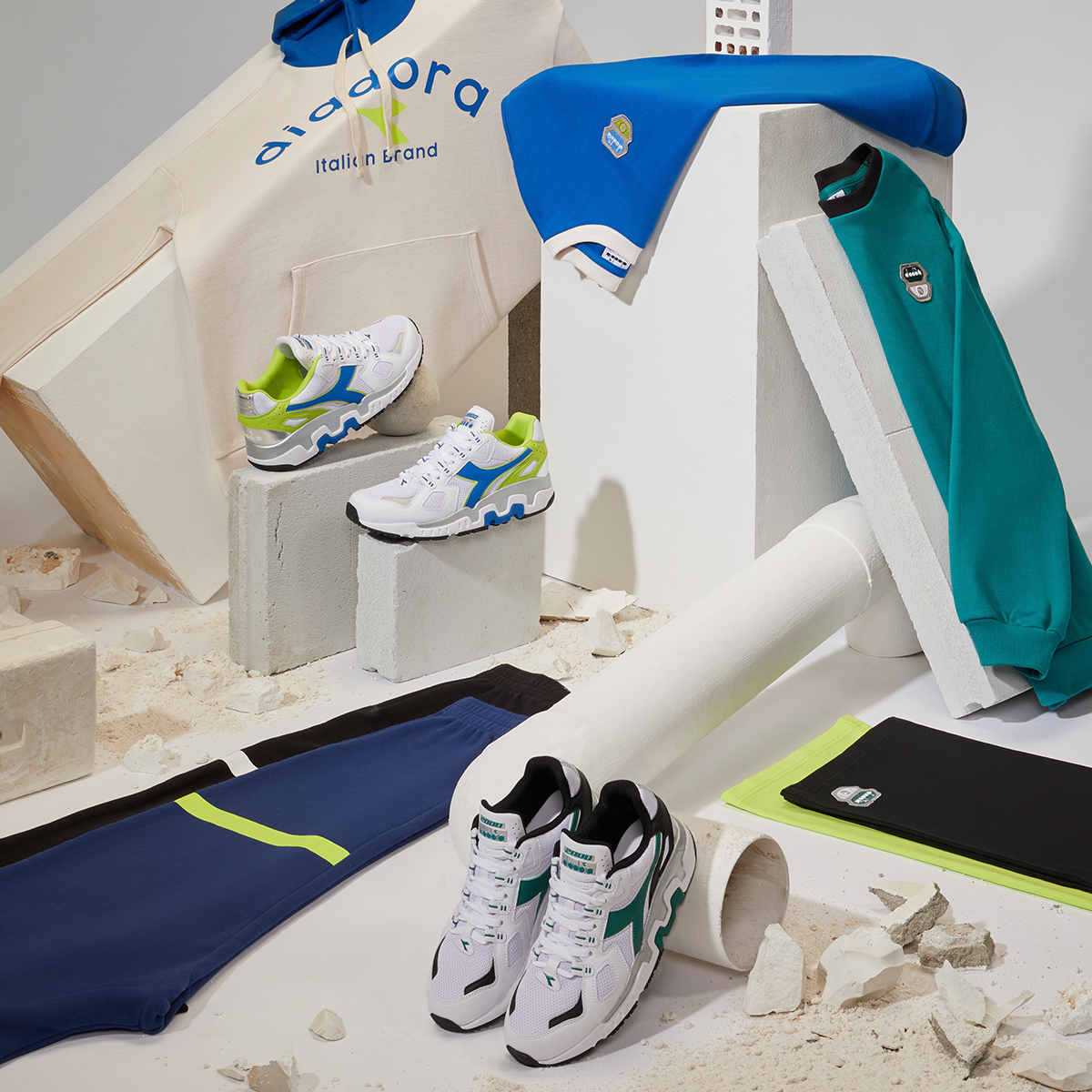 Kolekcja dedykowana młodym pasjonatom miejskim, którzy nie boją się siebie. Diadora Sportswear przemawia do nowego pokolenia młodych konsumentów poprzez kultowe produkty i niezwykłą współpracę z najbardziej wpływowymi projektantami i sklepami oferującymi sneakerowe produkty.