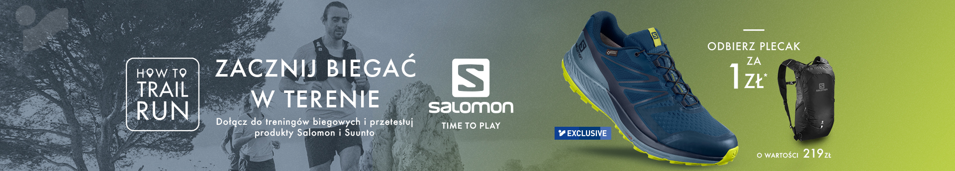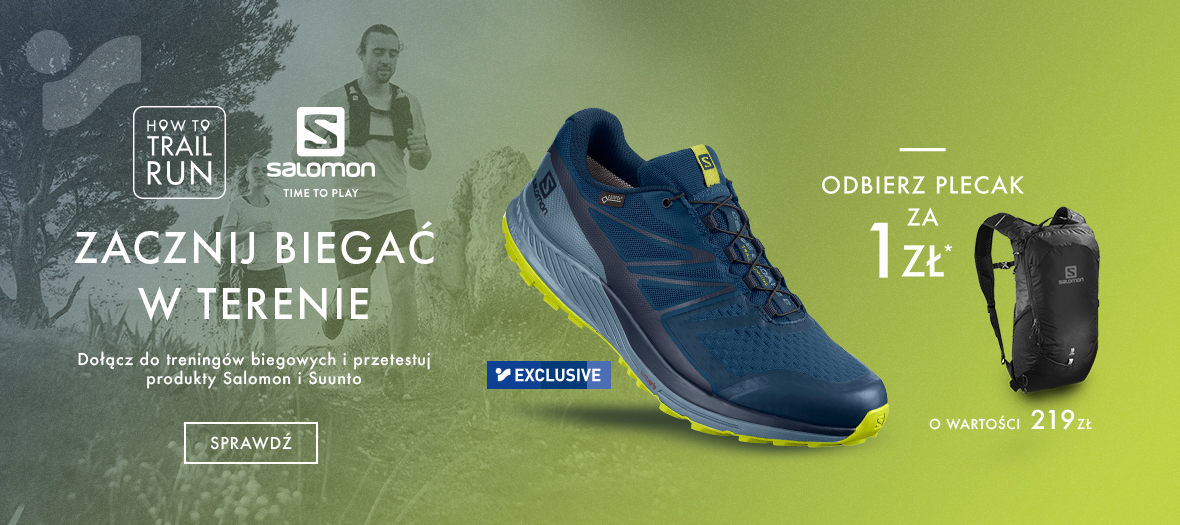 Marka Salomon wraz z siecią sklepów Intersport pomogą postawić Wam pierwsze trailowe kroki. Dołącz do naszych bezpłatnych treningów biegowych na trailowych ścieżkach, testuj produkty Salomona oraz Suunto. Przyjdź do sklepów Intersport i przy zakupie butów biegowych odbierz plecak Trailblazer 10.
